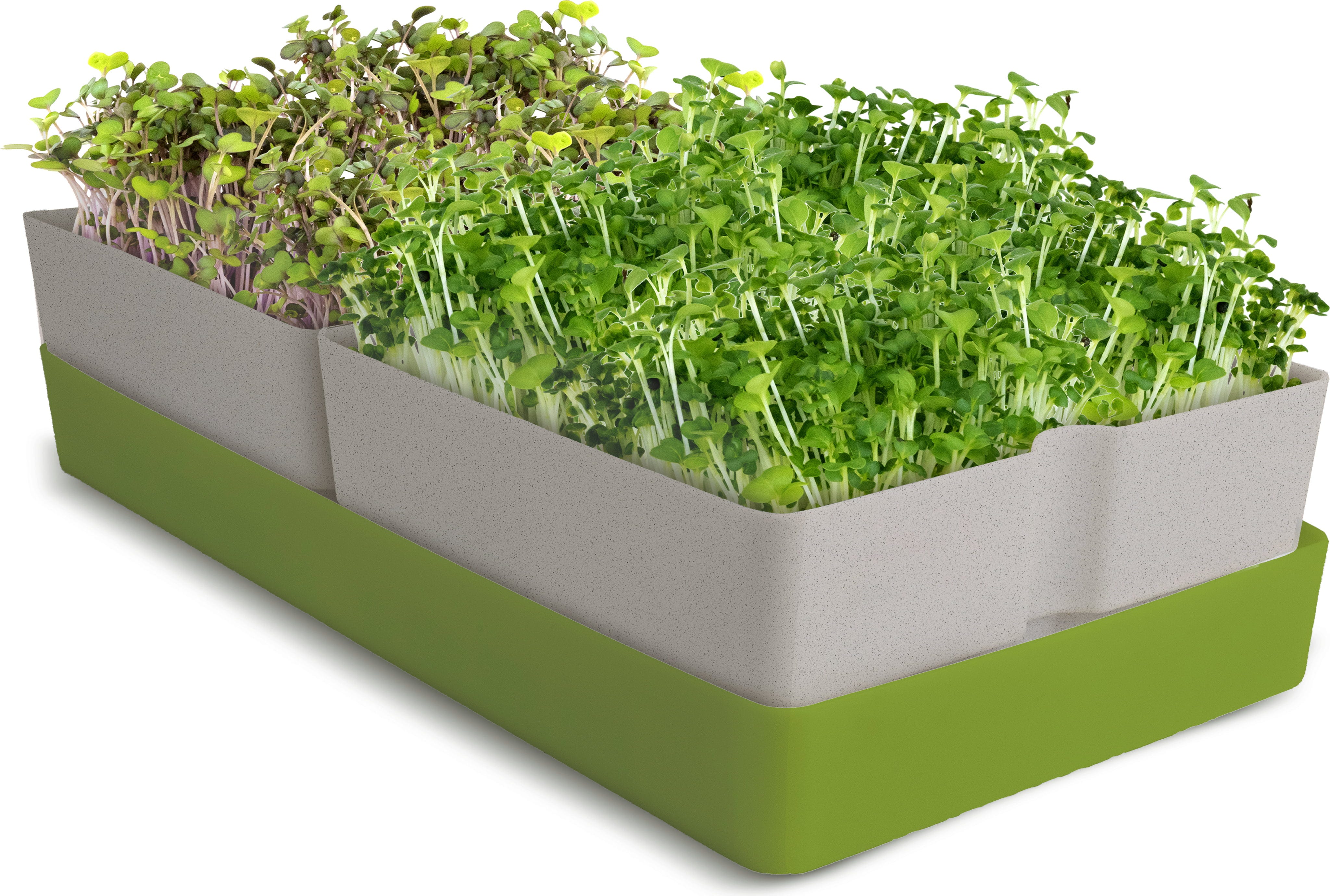 - Doppel-Tray-System: Baue zwei Sorten gleichzeitig an oder nutze die zeitversetzte Aussaat für eine tägliche Ernte.