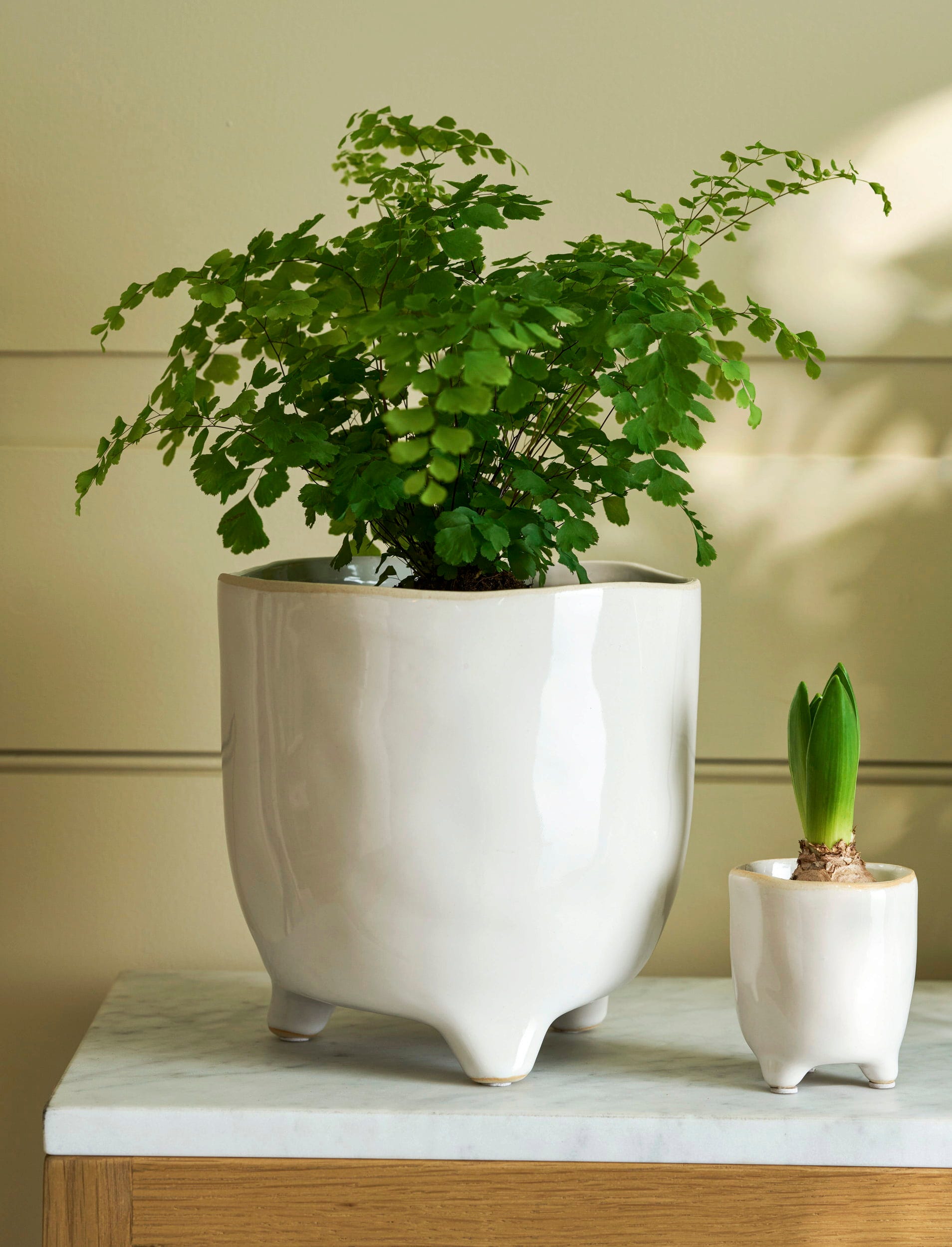 Dieser Blumentopf verleiht jedem Raum Charme und Struktur und ist perfekt für Kakteen oder filigrane Sukkulenten sowie kleinere bis größere Zimmerpflanzen geeignet. Ideal, um Regale, Schreibtische oder Fenstersimse mit einem Hauch von Grün zu verschönern.