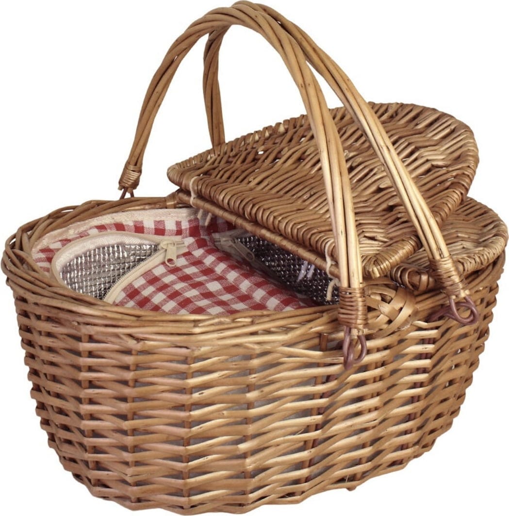 Die Weiden-Kühltasche „Ina“ verbindet traditionelles Korbdesign mit praktischer Funktionalität. Das sorgfältig geflochtene Weidenmaterial sorgt für Stabilität und eine natürliche Optik, während das isolierte Innenfach Lebensmittel und Getränke angenehm kühl hält. Die rot-karierte Stoffeinlage unterstreicht den klassischen Picknick-Charakter und macht diese Kühltasche zu einem stilvollen Begleiter für entspannte Stunden im Freien.