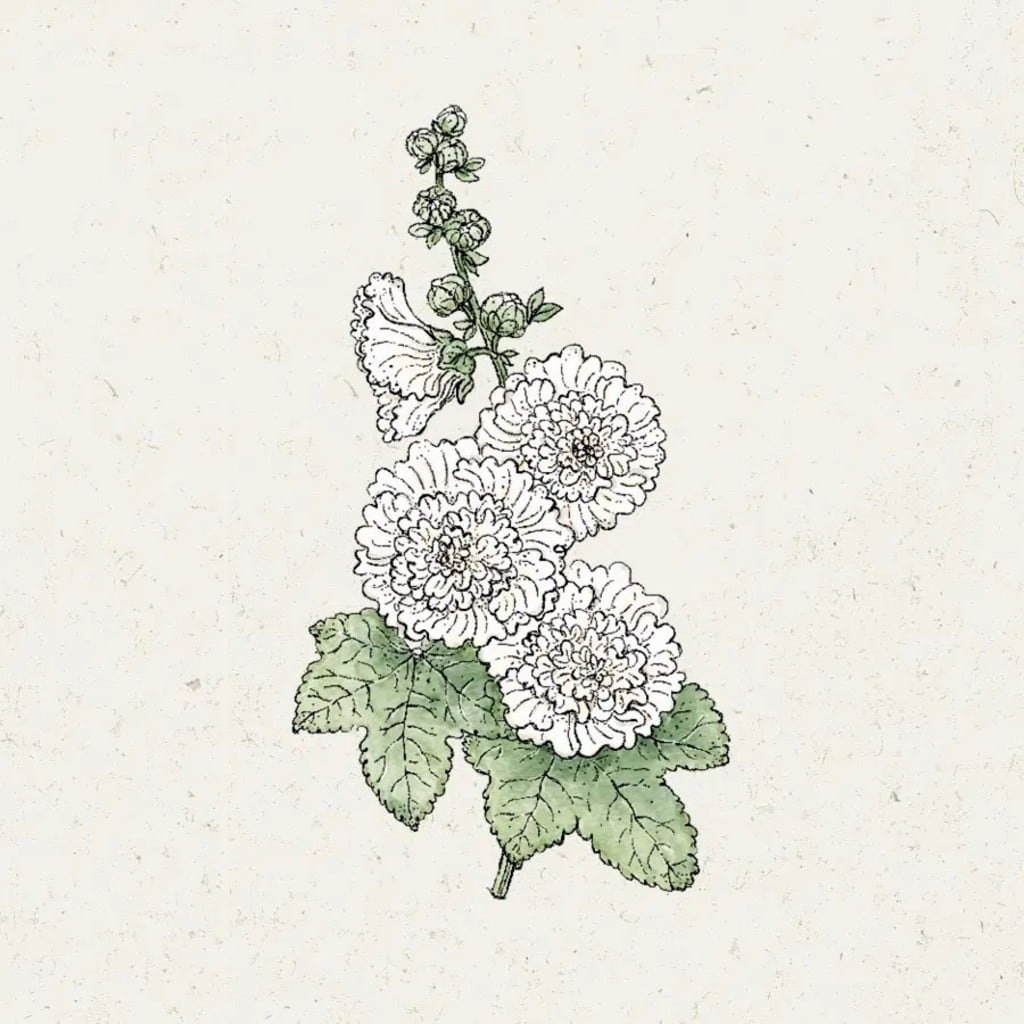 Jora Dahl Alcea rosea "Queeny White" (Stockrose)