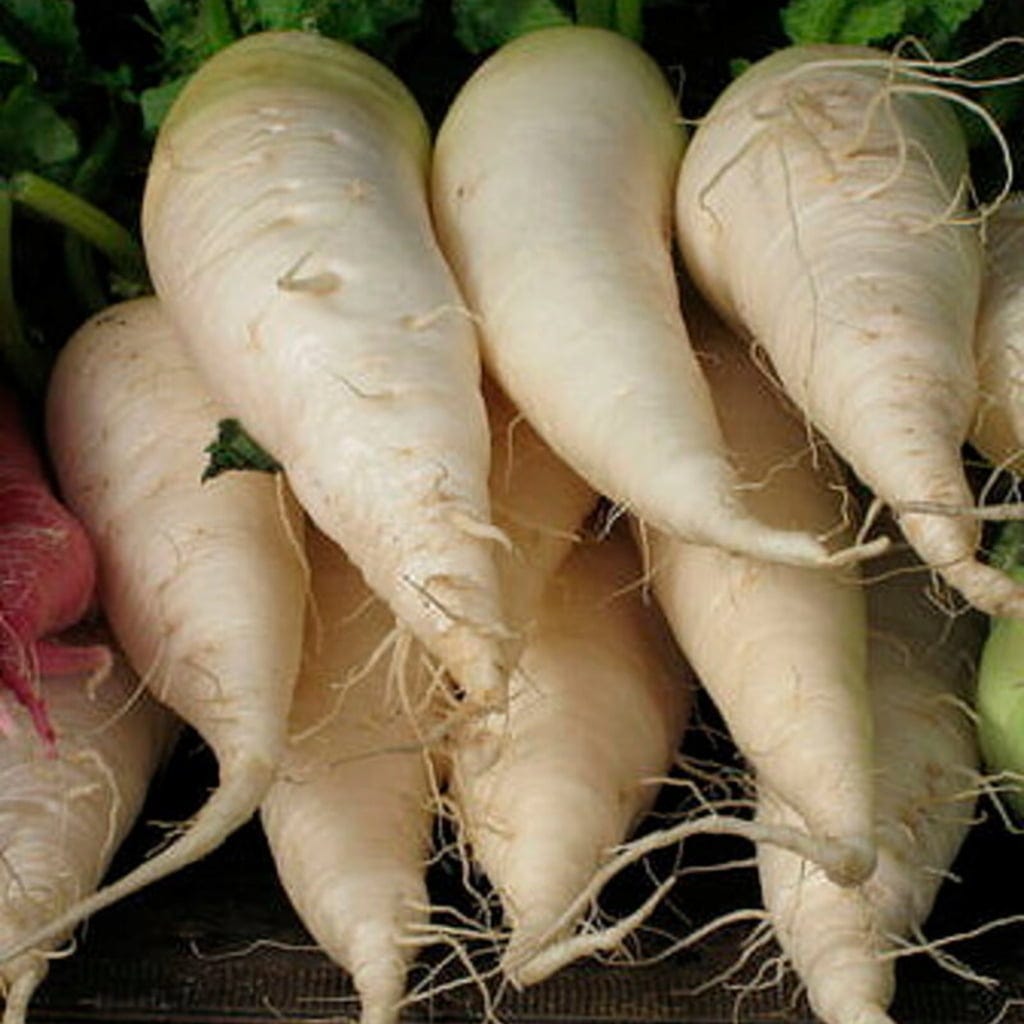 Der Radies German Beer liefert weiße, rübenförmige Wurzeln mit fester, süßer Textur. Traditionell zu Bier oder Zucker genossen, ist diese alte Sorte robust und eignet sich für spätsommerliche bis winterliche Ernten. Ideal für Gartenbeete oder Töpfe.