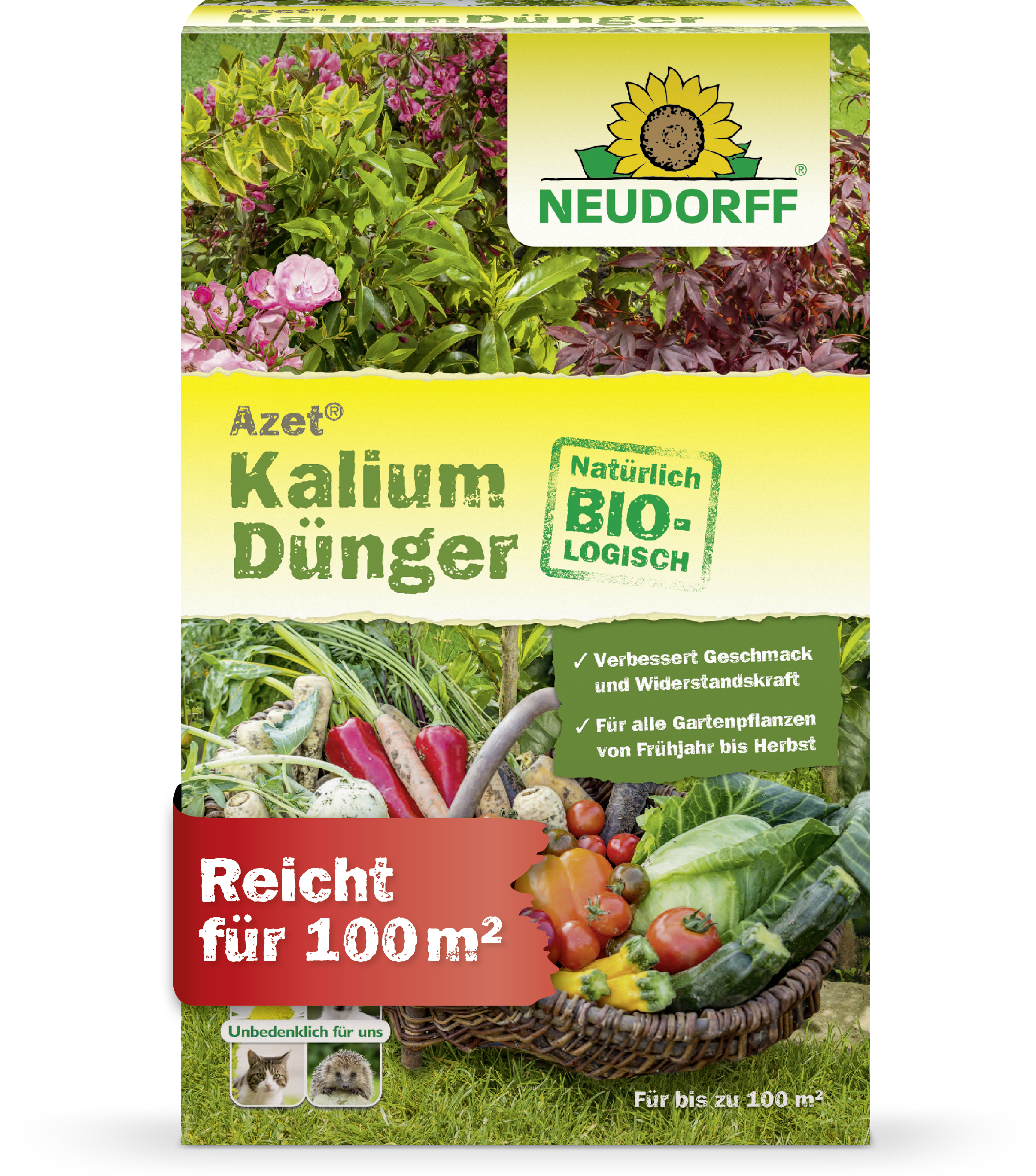 Der Azet Kaliumdünger ist ein organischer Dünger für alle Gemüse- und Obstpflanzen, Ziergehölze sowie Rasen im Garten. Die Anwendung im Frühjahr kann Geschmack, Reife und Qualität der Ernte positiv beeinflussen, wie auch die Lagerfähigkeit von Obst und Gemüse. Im Herbst hingegen wird die Widerstandskraft der Pflanzen Frost und Trockenheit gegenüber unterstützt, während der Wasserhaushalt reguliert wird.