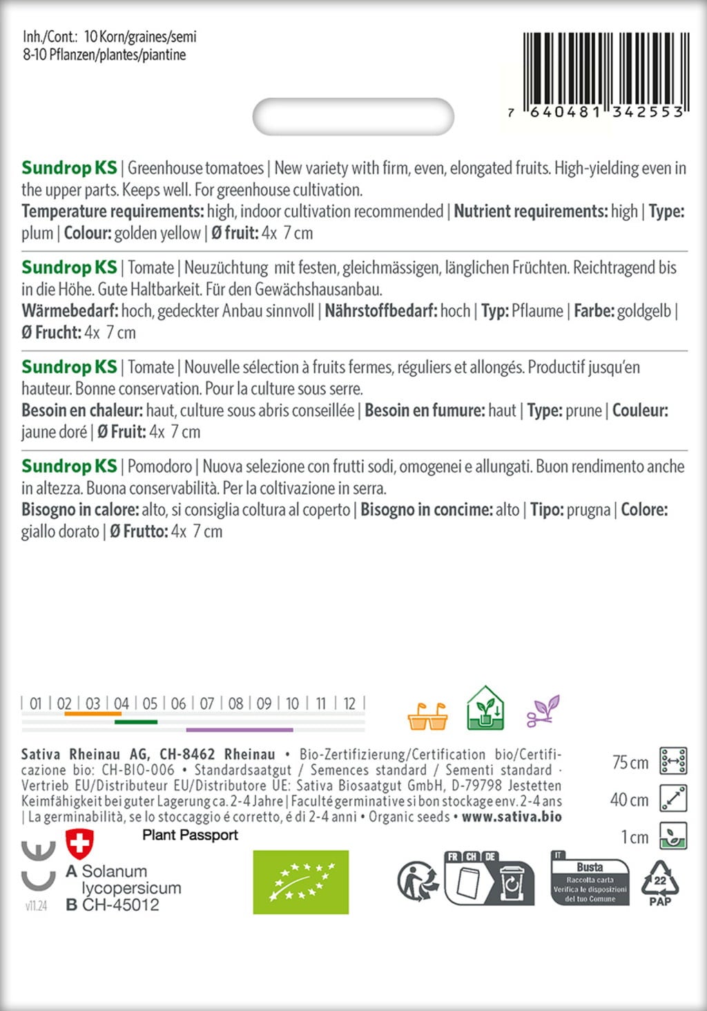 | Hersteller: | Sativa Biosaatgut GmbH, Keltenweg 4, 79798 , Jestetten, Österreich, sativa@sativa.bio, www.sativa.bio |