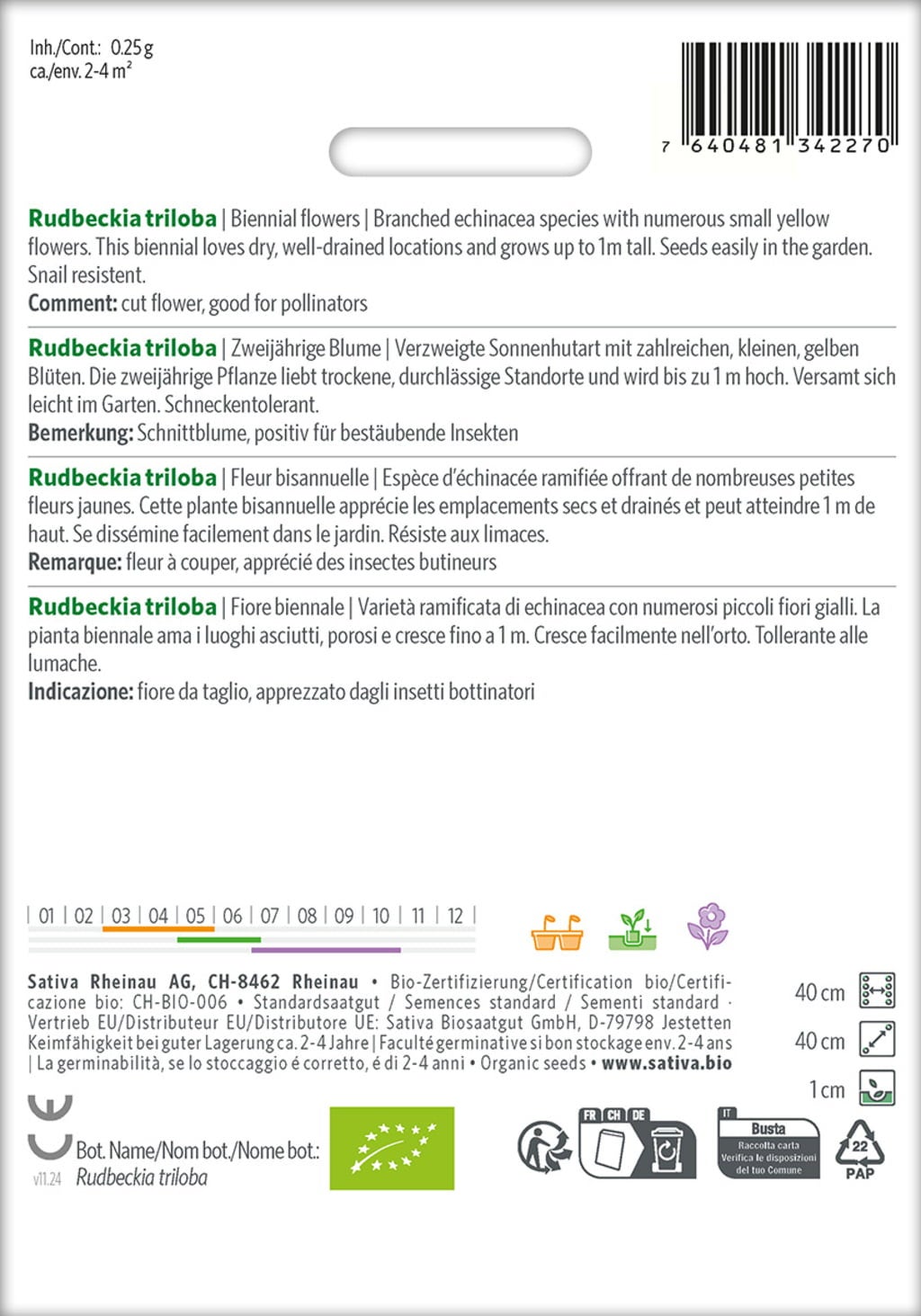 Erfahrungsberichte in Deutsch für Sativa Bio Zweijährige Blume "Rudbeckia triloba"