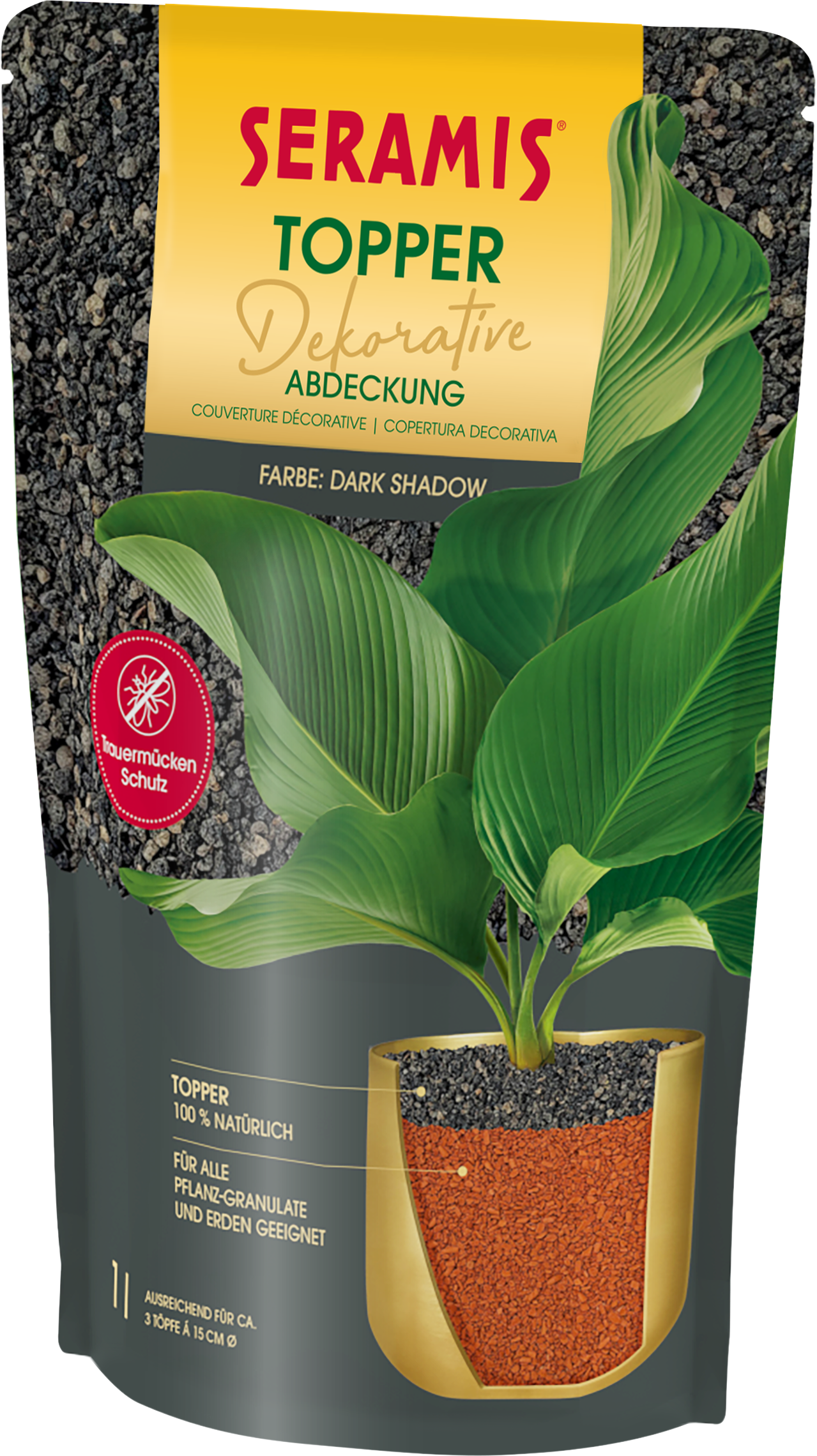 SERAMIS® Topper eignen sich als Abdeckung für jede Art von Substrat und sind ebenso dekorativ wie funktional: Erhältlich in 4 attraktiven Farbtönen fügen sie sich optisch perfekt in unterschiedliche Einrichtungsstile ein, während sie gleichzeitig effektiv vor Trauermückenbefall schützen.