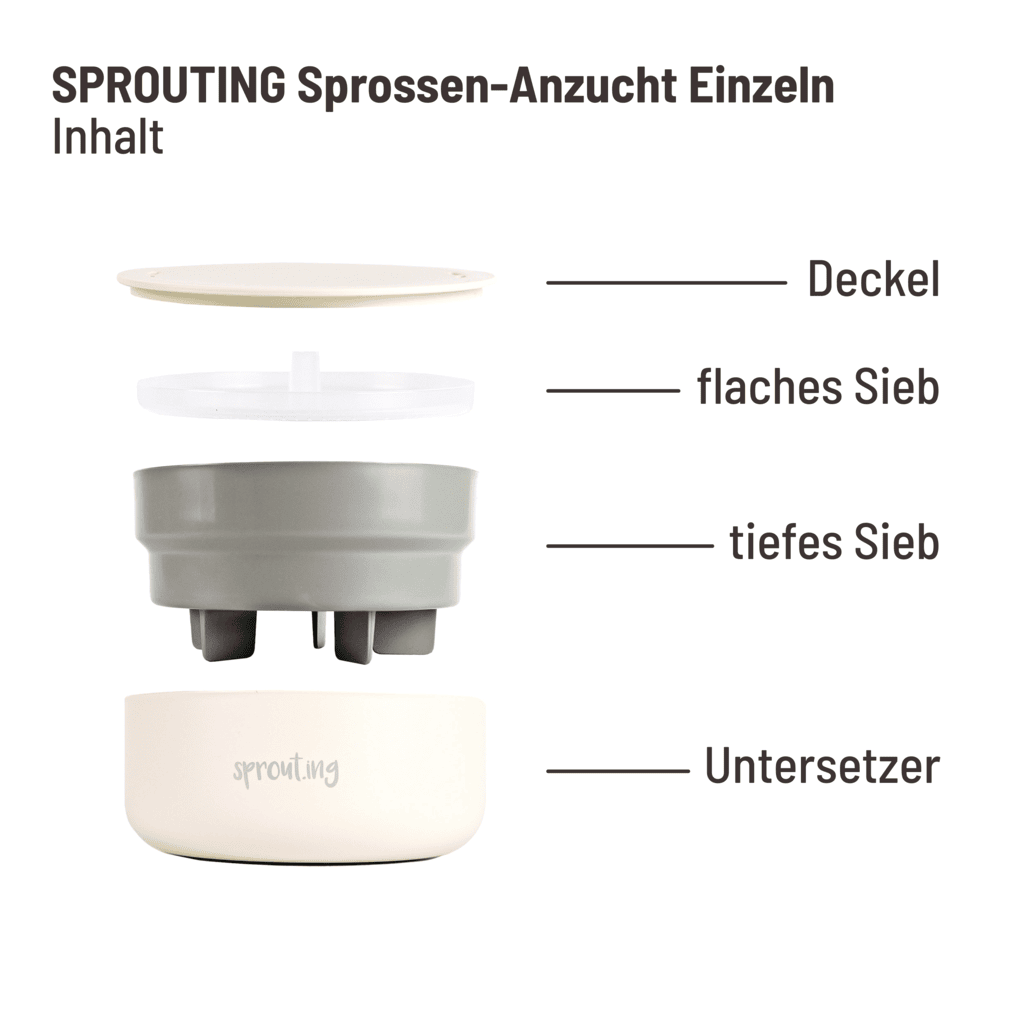 - Bitte beachte je nach Sorte die Einweichzeit, sowie die Keimdauer auf der Verpackung.