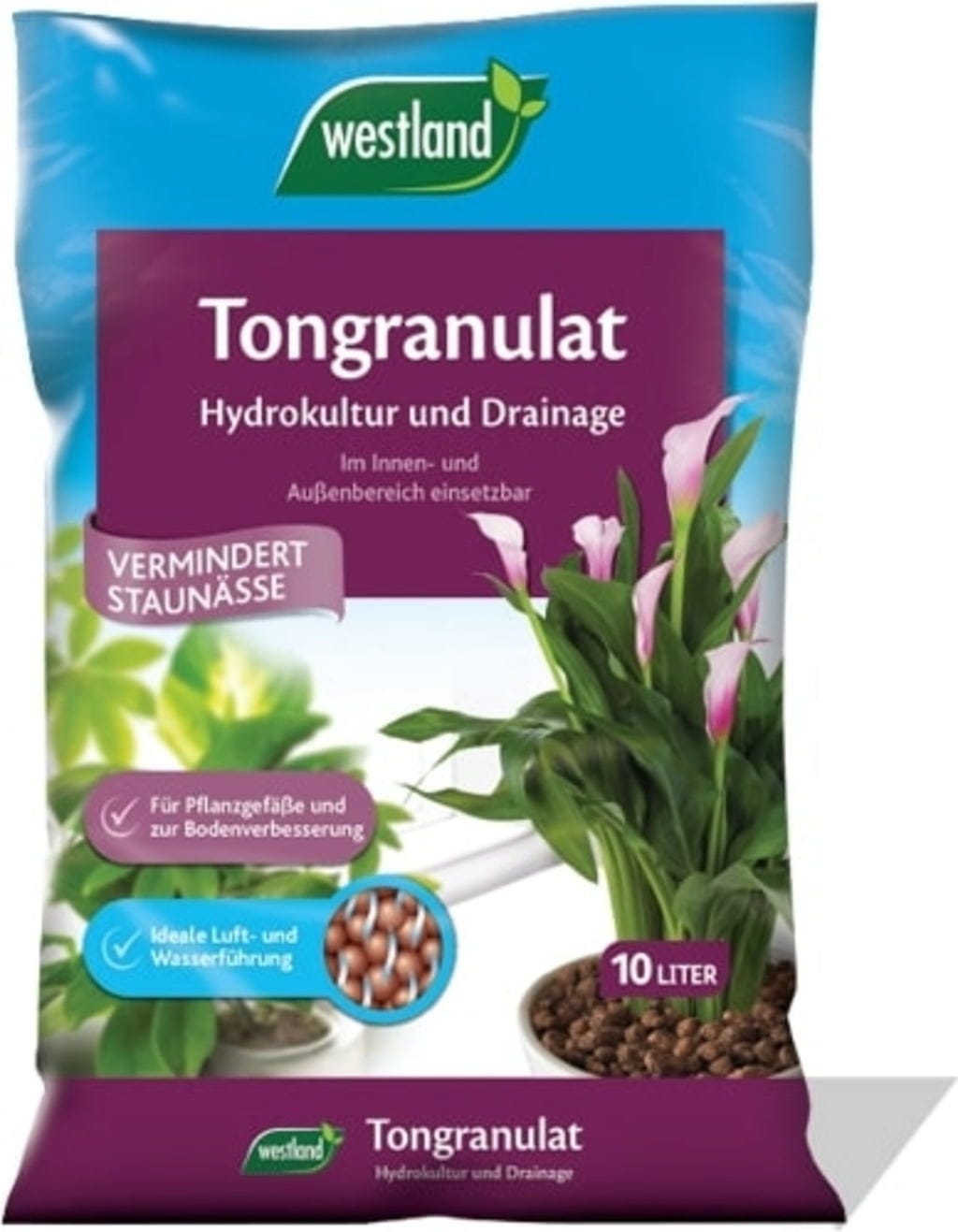 Dieses natürliche Tongranulat garantiert Ihren Hydrokulturpflanzen stabilen Halt sowie die besten Bedingungen für ein optimales Wachstum, während es als Drainage bei Erdpflanzen Staunässe und Wurzelfäule verhindert. Für dieses Granulat wird ausschließlich schonend gebrannter Ton verwendet, der über viele Jahre hinweg nutzbar und sehr strukturstabil ist. Die dafür ausgewählten Rohstoffe entsprechen selbstverständlich den strengen Qualitätsstandards von Westland. Sie können Ihre Hydrokulturpflanzen unabhängig von Alter und Größe jederzeit in das mineralische Tongranulat umtopfen.