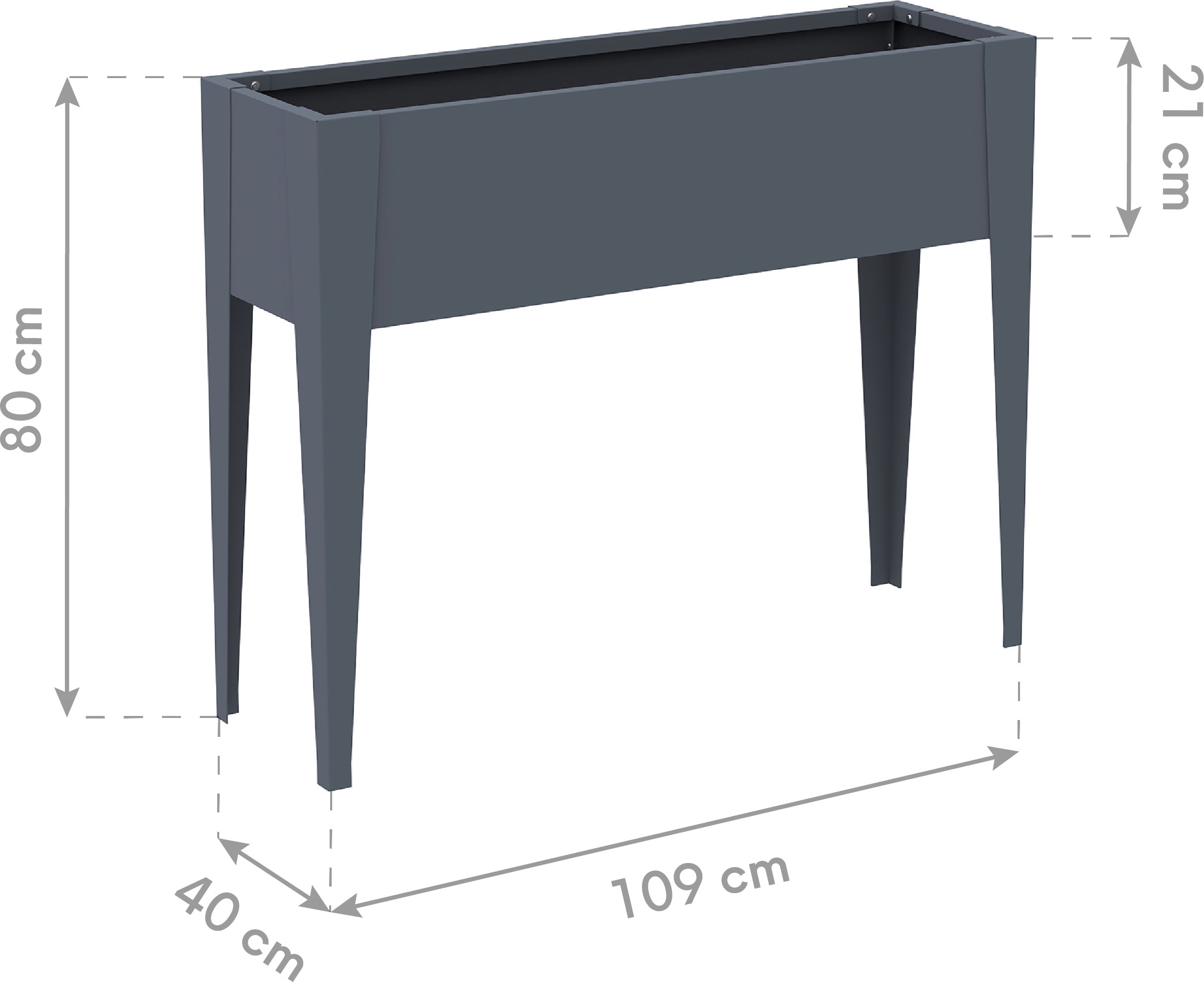 Das moderne und ansprechende Design aus pulverbeschichtetem Stahl eignet sich sowohl als Hochbeet als auch als Pflanzkasten. Seine ergonomische Arbeitshöhe und das schlanke Format machen es zur idealen Lösung für stilvolles Gärtnern auf Balkon, Terrasse oder im kleinen Stadtgarten. Verdura zeichnet sich außerdem durch Robustheit, Witterungsbeständigkeit und Langlebigkeit aus.