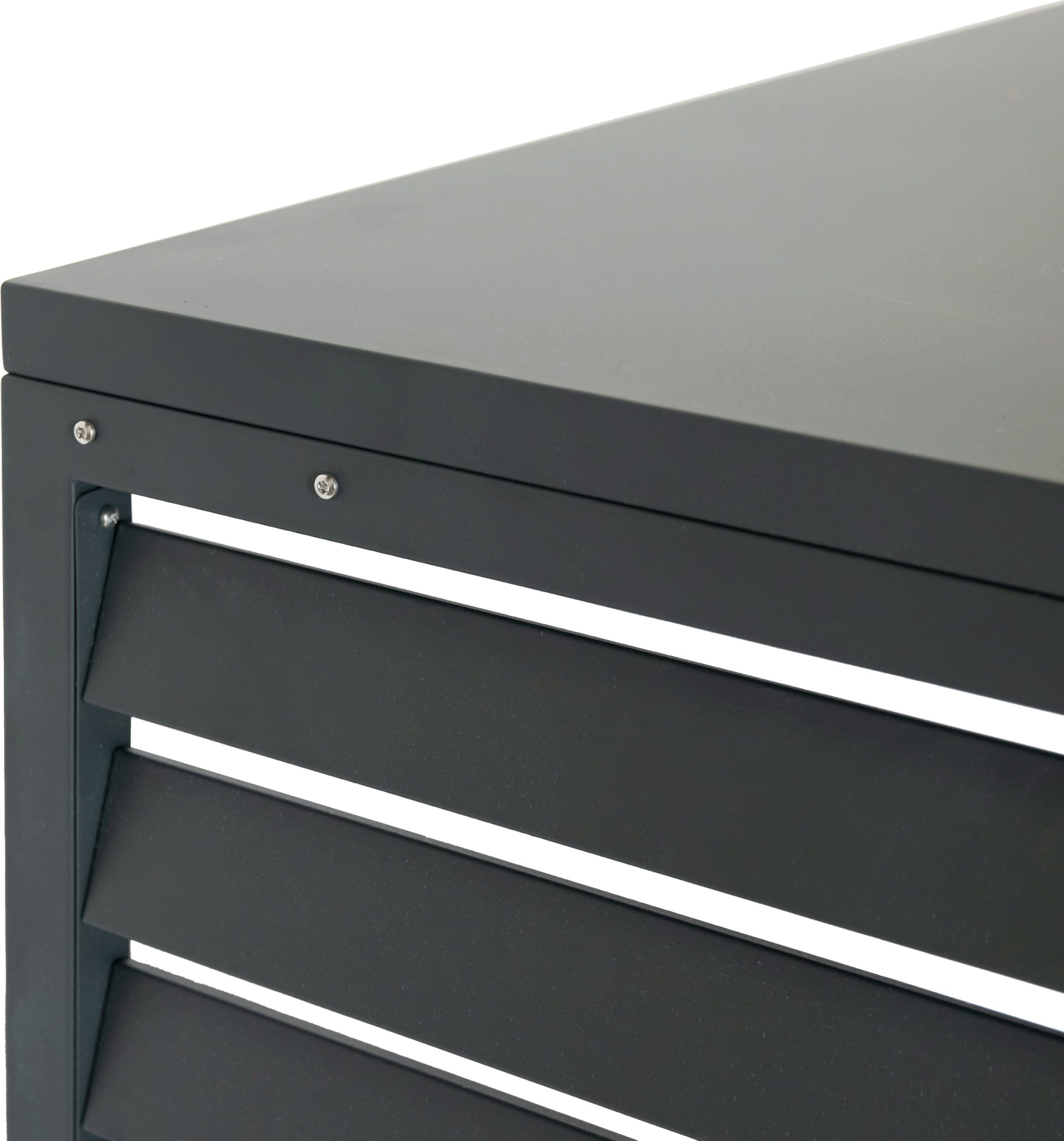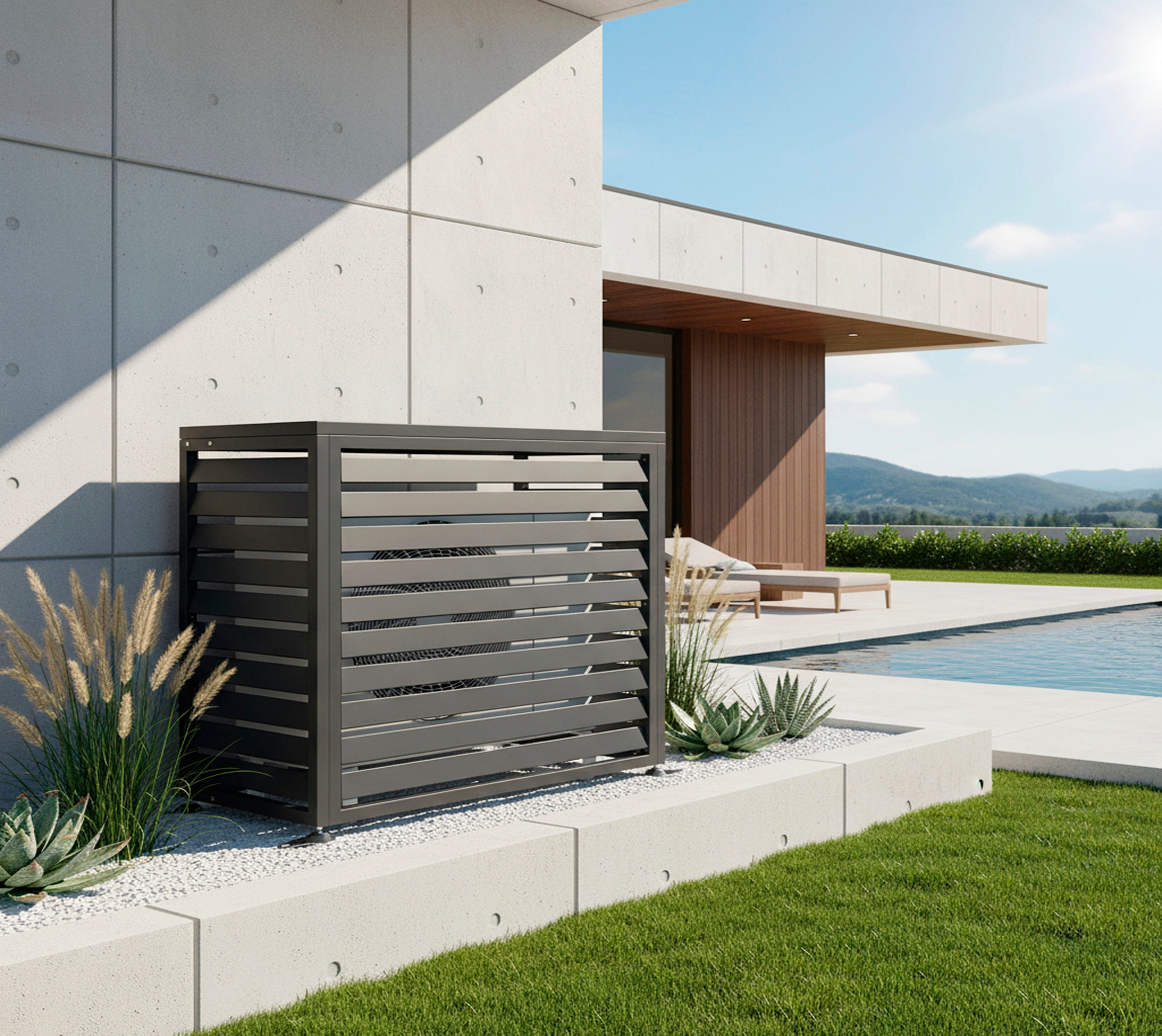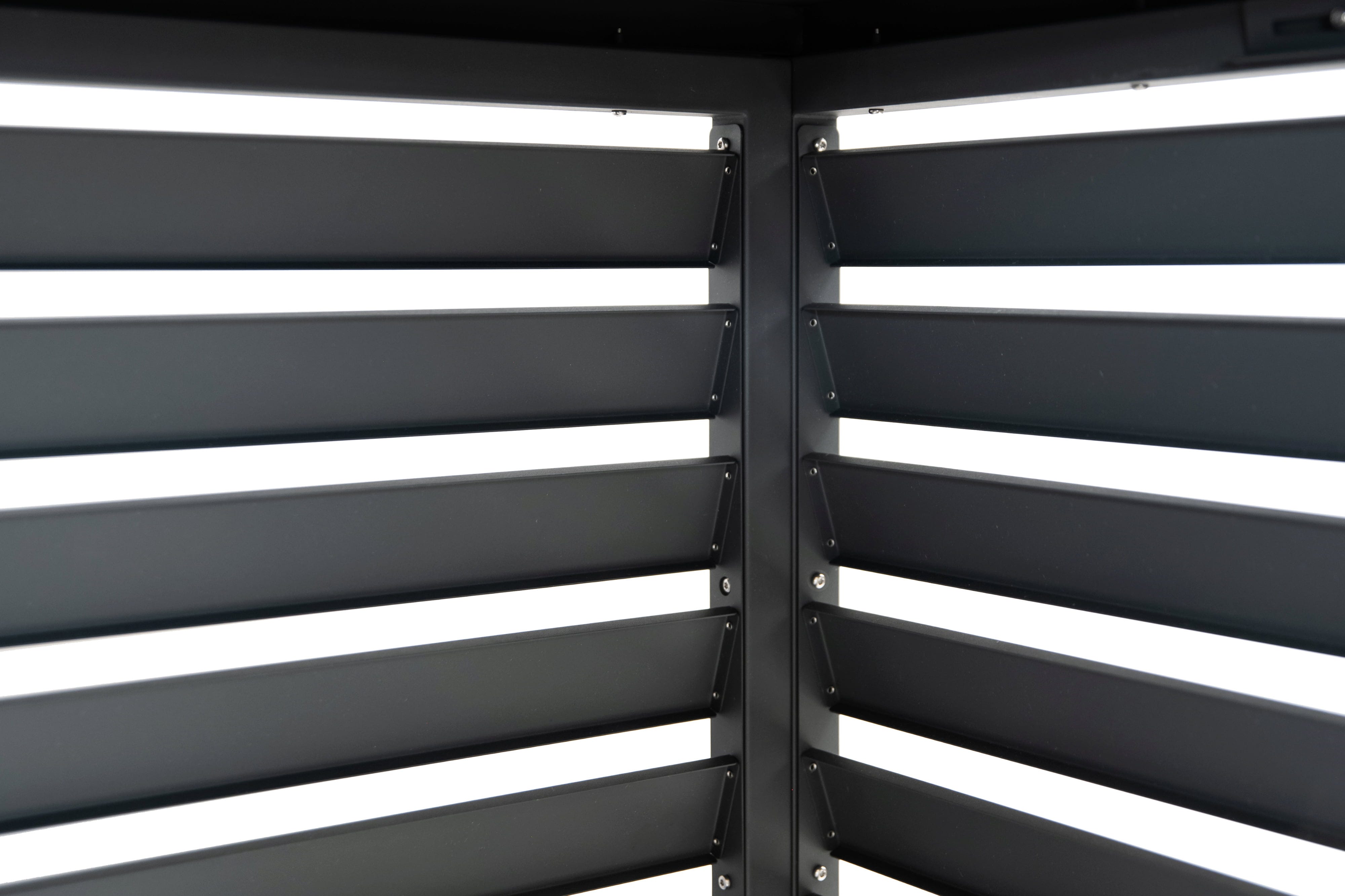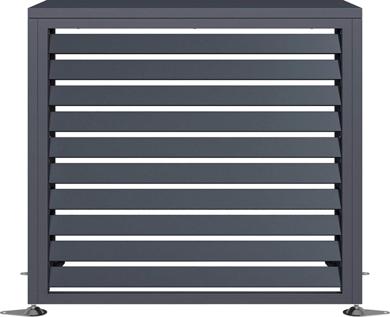 Der Boxa Sichtschutz aus verzinktem Stahl bietet Wärmepumpen sowie Klimaanlagen eine formschöne und dekorative Einhausung. Auf diese Art wird die Technik zuverlässig vor der Witterung geschützt und zugleich optisch aufgewertet.